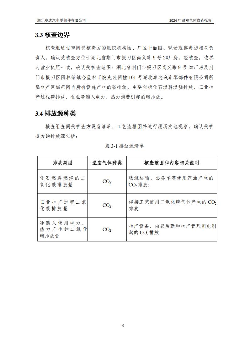 湖北卓达汽车零部件有限公司温室气体排放盘查报告